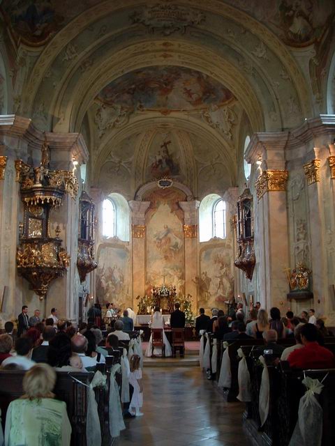 Éppen egy esküvő folyt a templomban, amikor ezt a felvételt készítettem. A plébániatemplom falai a hazai barokk festészet egyik legnagyszerűbb alkotásainak együttesét, Franz Anton Maulbertsch (1724-1796) munkáit őrzik. A festő 1759. augusztus 6-án, a templom felszentelésén való részvétele után távozott el Sümegről. Az új templom felszenteléséről kiállított és a sekrestyében őrzött irat szövege szerint a templomot Krisztus mennybemenetelének tiszteletére szentelték.