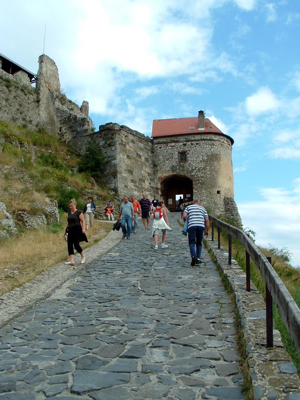 További kimerítő hegymászás végén pillantjuk meg magunk előtt a vár bejárati kapuját. Most már egyáltalán nem csodálkozunk azon, hogy várat a története során a törökök soha nem tudták elfoglalni. Ide még békében is nehéz dolog feljutni, hát még akkor, ha bentről még lőnek is az emberre! No, de haladjunk sorjában a vár történetével!