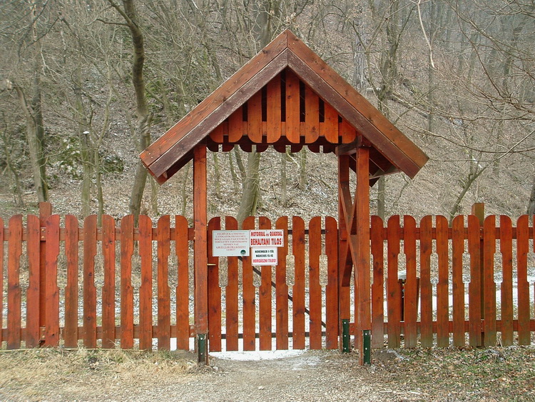 Az Öreg-hegyről leereszkedve a tavat megkerülő új országútról nyíló parkoló mellett érjük el a Gaja-völgyi Tájcentrum egyik kapuját.
