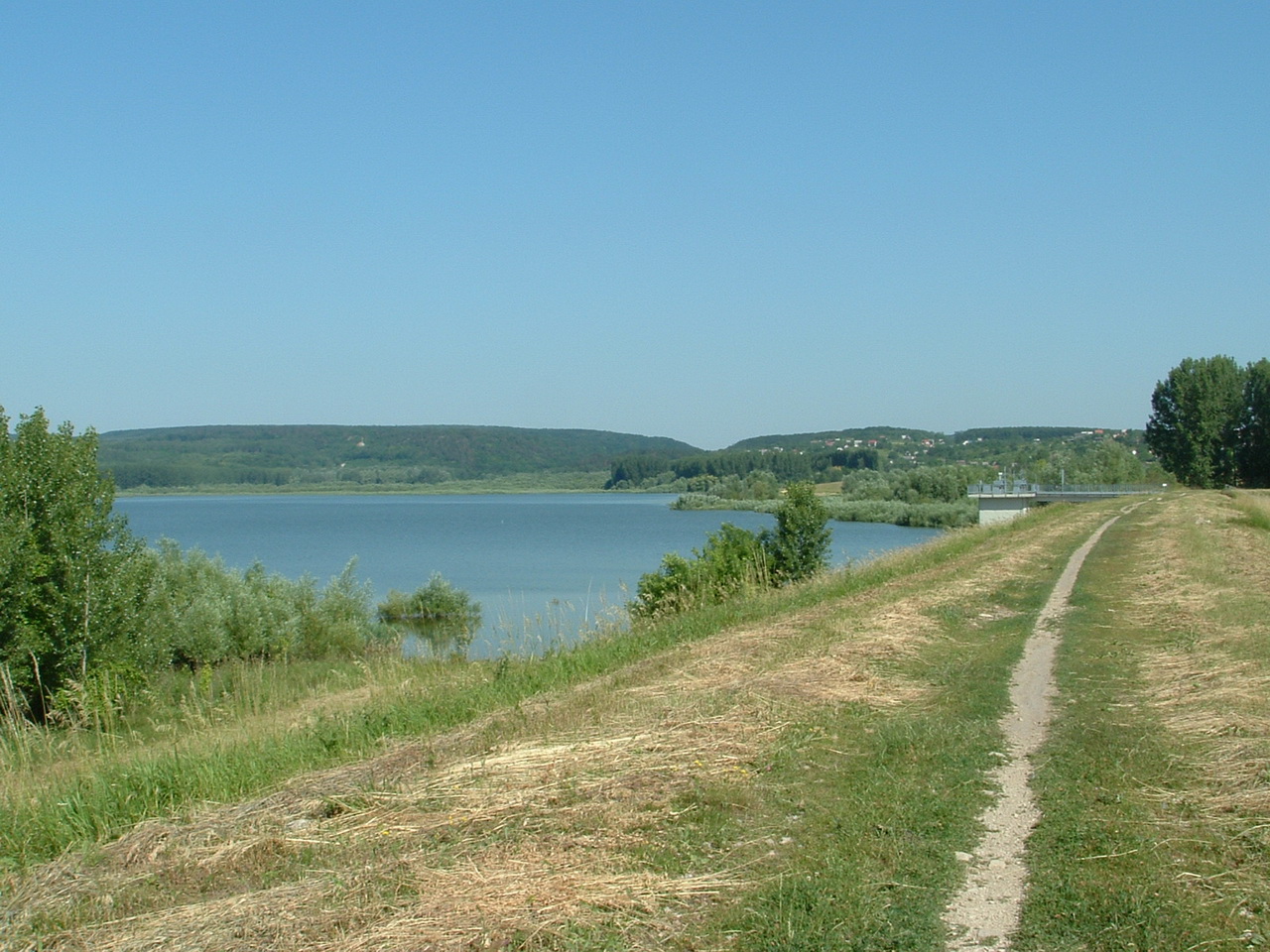 Keleti irányban áttekintve a tavon a víkendházak mögött már a Vértes vonulata húzódik. A tavat körbejárva mi is elhaladunk majd a víkendházak között. A víztározót egyébként 1971-72-ben hozták létre, akkoriban emiatt meg is kellett változtatni az Országos Kéktúra útvonalát, ami most a déli oldalán kerüli meg a 223 hektár felületű mesterséges tavat. A tó átlagos vízmélysége 6-8 méter, a legmélyebb pontja pedig a feltöltés mértékétől függően akár 14-15 méter is lehet!