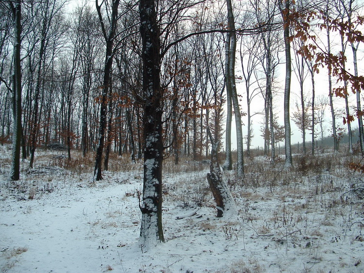 Egy irtásfolt alsó széléről, egy vadetető mellől készült ez a kép még 2005-ben. A háttérben a Hársas hegyoldala látható. Azóta már itt is kefesűrűségű, 4-5 méter magas újulat áll, teljesen elfogva a kilátást.