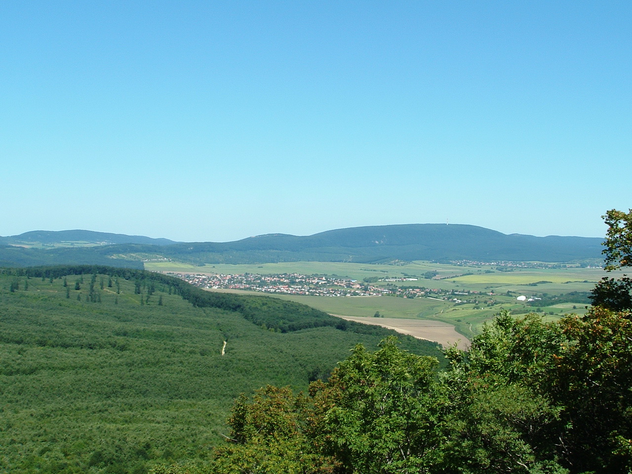 Ha ugyanerről a pontról visszatekintünk, már jócskán magunk mögött látjuk a Somlyó ligetes tetejét.
