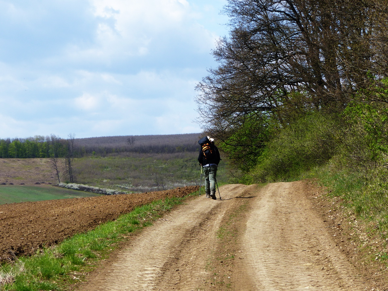 A szántók között kanyargó földút leereszkedett a dombhátat átszelő széles Mocsolya-völgybe. Kéktúrázó ismerősök elmondása szerint ez az út nagyon sáros tud lenni esős időben!