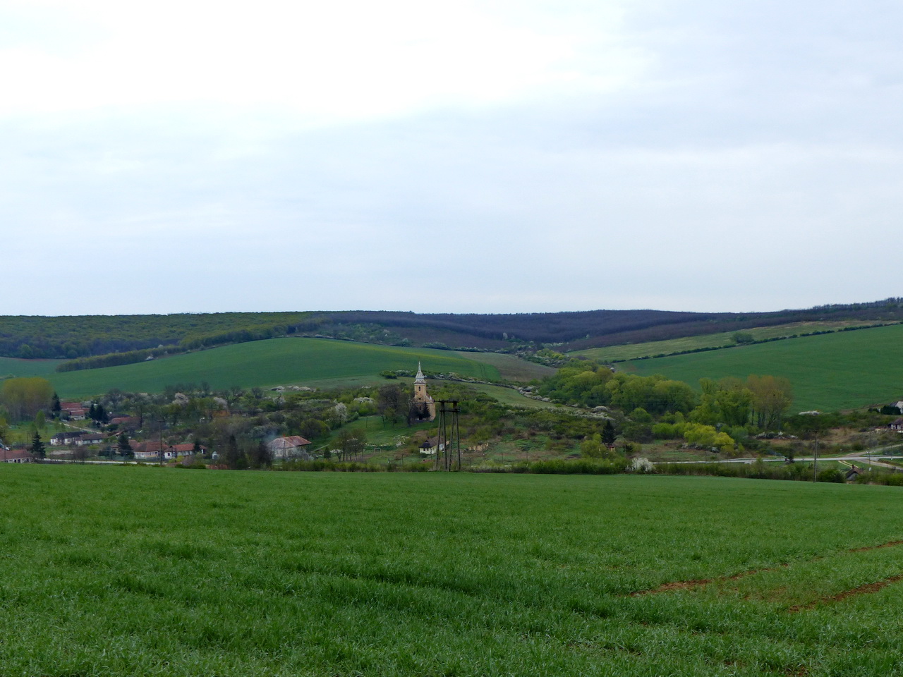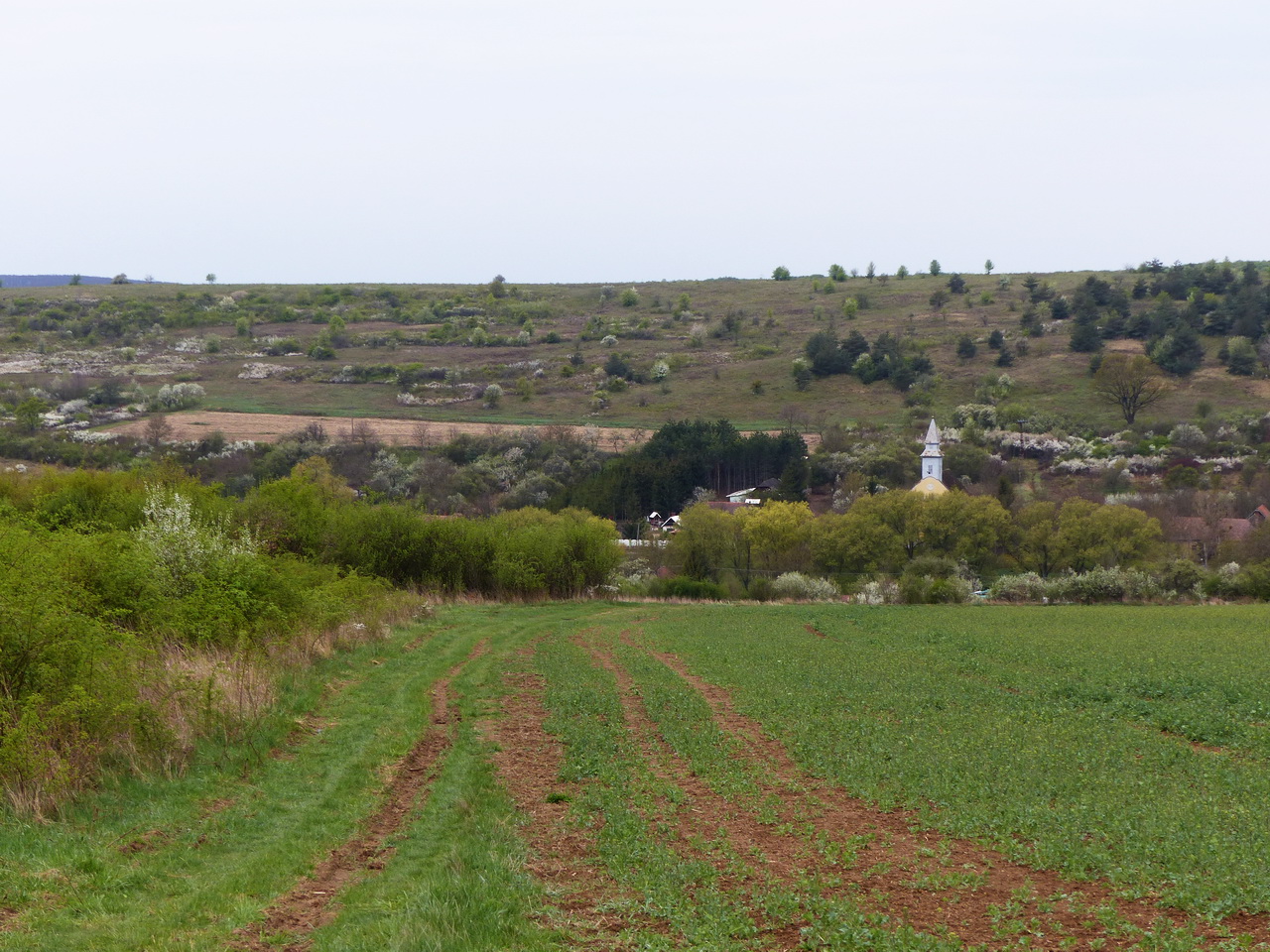 A Felsővadász és a következő falu, Nyésta közötti táv nagy részét a szántókon átvezető mezei földúton tesszük meg a két települést egymástól elválasztó dombháton keresztül. Itt már jócskán felkapaszkodtunk a dombra, amikor egy pillanatra megállva visszatekintettünk a falura.