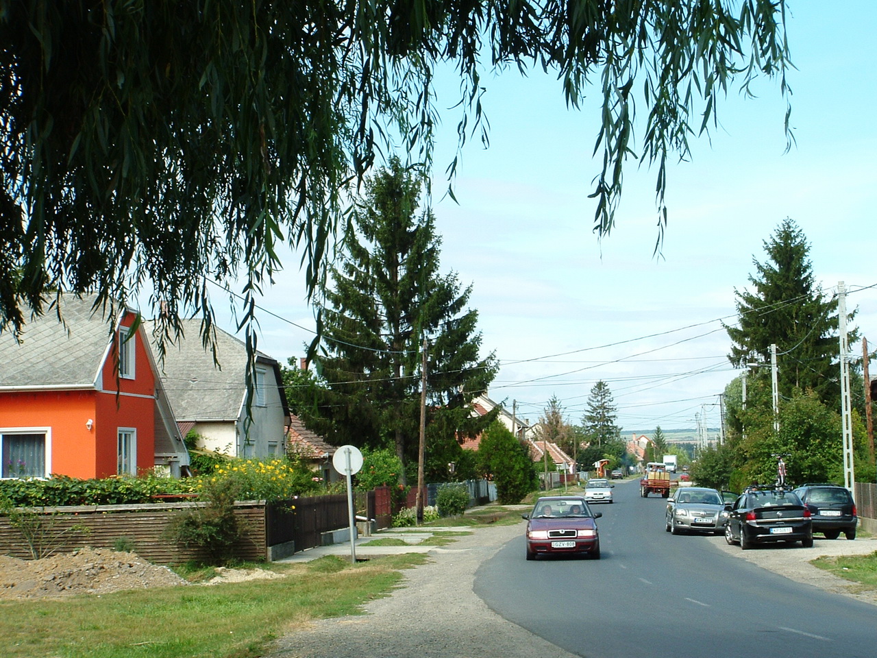 Az encsi Petőfi utcán előretekinte innen is látszanak a hegyek.