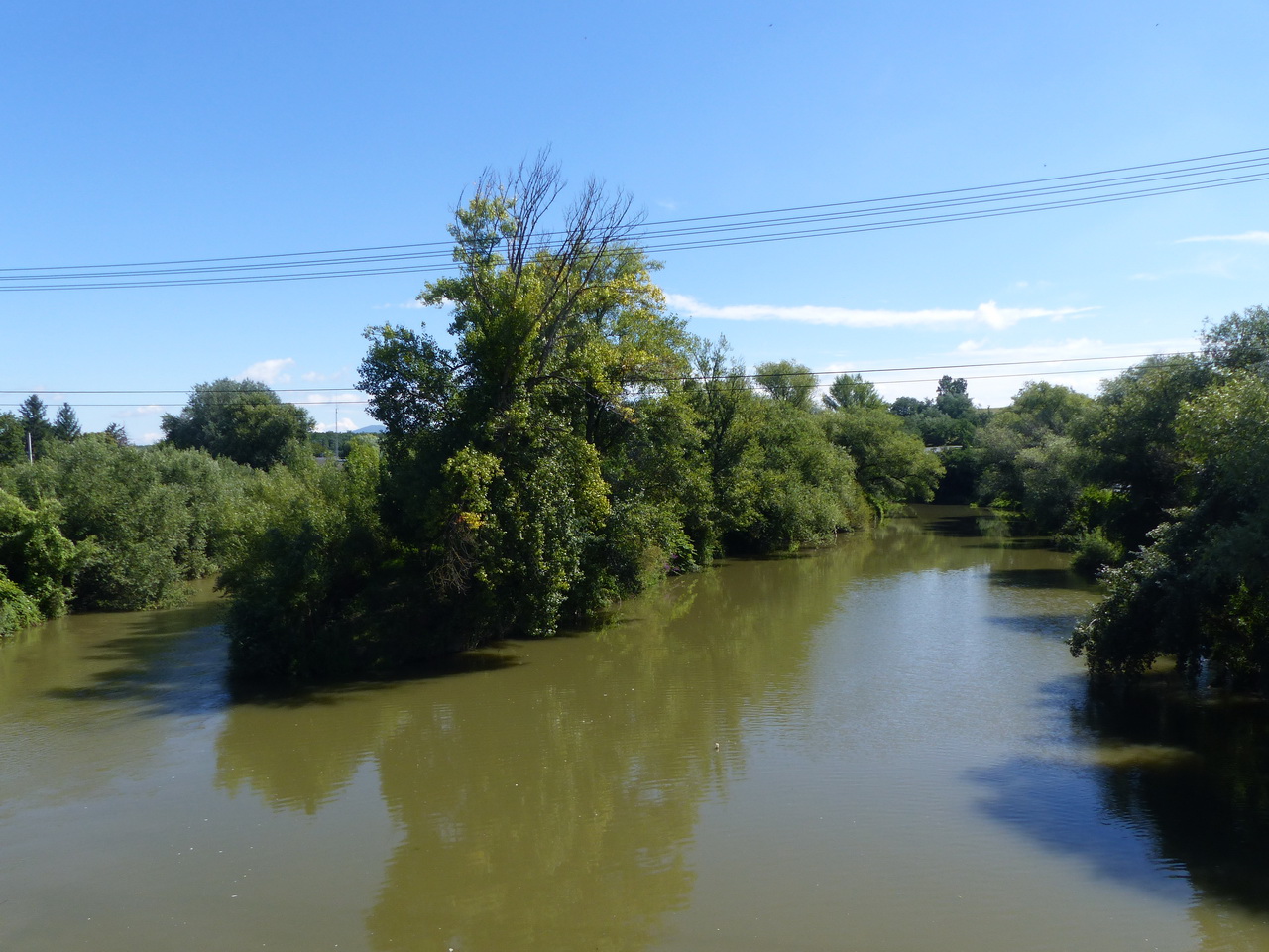 Észak felé tekintve a Hernádra a hídról jól látszik jobbra a folyó főága, mellette balról itt torkollik vissza az erőműtől visszaérkező üzemvíz csatorna.