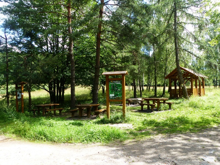 Nagyjából negyedórás menettel érkezünk meg a Mlaka-rét útelágazásába, az erdei pihenő padjaihoz, asztalaihoz. Itt akár le is telepedhetünk egy hosszabb pihenőre!