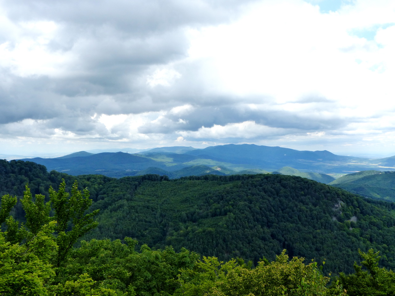 A Milic-csoport hegyei egy kicsit közelebbről. A hegyek előterében az apró szürke folt Füzér vára, ami innen is látható. És mindezért a panorámáért nem is kell nagyon megerőltetnünk magunkat: a Nagy-Péter-mennykőre egy talán húszperces kényelmes sétával feljuthatunk a csak alig-alig emelkedő turistaúton!