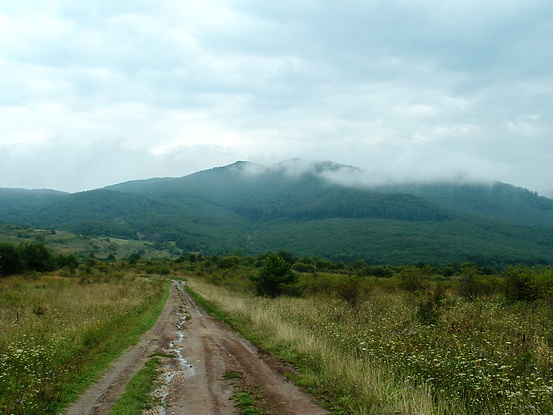 Továbbindulva tisztásra értünk ki, ahol egy békalencsés kis tavacska mellett farönkökből épített öreg ház állt (könyvünk szerint ez volt a régi István-kúti erdészház). Ezután egy sima dózerútba torkollott a földutunk, ezen haladhattunk kitűnő tempóban tovább. Kereszteztük a Mlaka-rét turistaút-csomópontját, aztán tovább folytattuk utunkat a Zemplén csúcsai között kanyargó földutunkon.