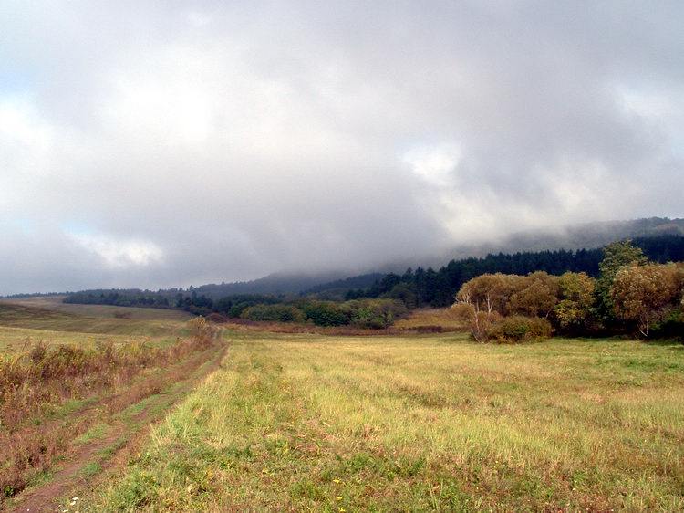 Először még a rétek, kaszálók között haladtunk, itt még csak nagyon enyhén emelkedett alattunk a földút, közben azt figyeltük, hogyan elemelkednek fel, oszlanak el a ködfoltok. Aztán kereszteztünk egy erdőfoltot, és az út is meredekebbé vált. Szuszogtató kaptatón araszoltunk egyre feljebb a hegyoldalban, időnként visszafordulva láttuk, ahogy mögöttünk darabokra szakadozik a ködtakaró, aztán a felhőfoltok lassan elenyésznek a levegőben. A tetőhöz közeledve szinte már derült ég alatt kapaszkodtunk! Fenn az erdőhatáron megálltunk még pár percre, és letekintettünk a mögöttünk hagyott völgyre. Ekkor már szikrázóan sütött a nap, kár, hogy a levegő még nagyon párás volt, ami azért lerontotta az Upponyra nyíló kilátást.