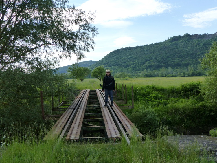 Nagyjából negyedórás menettel érkeztünk meg a Bódva felett átvezető vasszerkezetes hídhoz. Persze ezt nem gyalogos közlekedésre tervezték, nincs is kialakítva rajta megfelelő járda, az acélszerkezeten kell átegyensúlyozni azoknak, akik át akarnak kelni a folyó túlsó partjára! A Magyar Természetjáró Szövetségnek már régóta szándékában áll a híd megfelelő átalakítása, de a tervezés, engedélyezés már régóta húzódik és senki sem tudja, mikor lesz majd az ide megálmodott gyaloghídból valami! Addig pedig nincs más, mint az óvatos egyensúlyozgatás, ami az esőben, fagyban csúszóssá váló acélszerkezeten egyáltalán nem egy leányálom! Nekünk most szerencsénk volt, a híd nem volt sem vizes, sem pedig jeges, de más talán nem ússza meg ilyen könnyen! A kéktúrázók hiába szóltak már sokszor a híd veszélyessége miatt, semmi sem változott itt az elmúlt három évben!