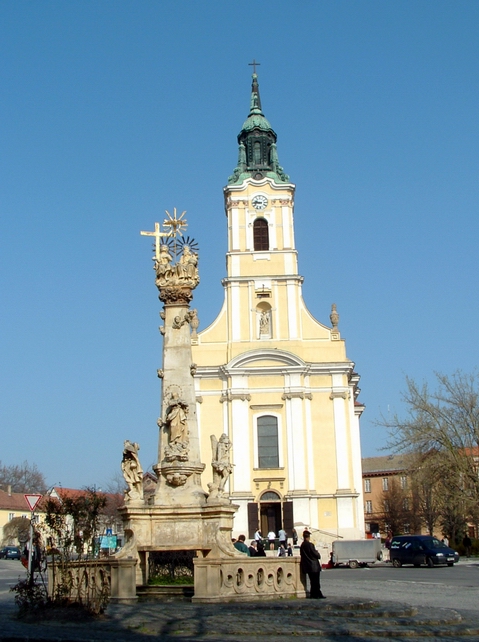 Rövid kapaszkodással értünk fel a Béla térre. A tér egyik nevezetessége az 1805-ben épült copf stílusú Szent László-templom, Közép-Európa legnagyobb egyhajós katolikus temploma. A templom előtt az 1753. évi pestisjárvány elmúlásának emlékére emelt Szentháromság-szobrot láthatjuk.