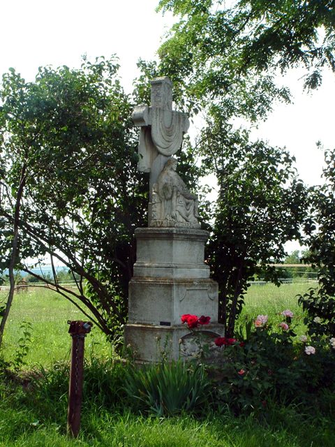 Kőkereszt kis pietaszoborral Simonfai-puszta bejáratánál.