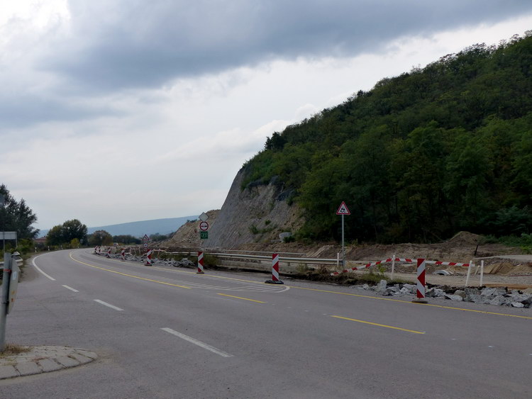 A sorompónál leszállva a bringáról betoltam az állomásfőnöki irodáig, ahol a vasutas az első szóra, mosolyogva belenyomta az állomásbélyegzőt a füzetbe, amelyen lakonikus egyszerűséggel csak annyi volt bolhányi betűkkel: „TAR”. Na mindegy, ajándék lónak ne nézzük a fogát, tartja a közmondás, így aztán megköszönve a szolgáltatást továbbindultam az utamon. Pár perc alatt kitekertem a falu bekötőútján a jelenlegi 21-es útra, ahol aztán egy óriási útépítésbe botlottam! Most folyik az országút kétszer kétsávos autóúttá való bővítése, a forgalom még a régi útpályán zajlik, de gőzerővel készül a túlsó oldalán a másik két sáv is. Itt még csak az alapozásnál tartottak, méteres gödrök és árkok húzódtak mindenfelé. De nekem pedig itt át kellene kelnem a túloldalra, hiszen a régi út ott indul tovább Mátraverebély felé!